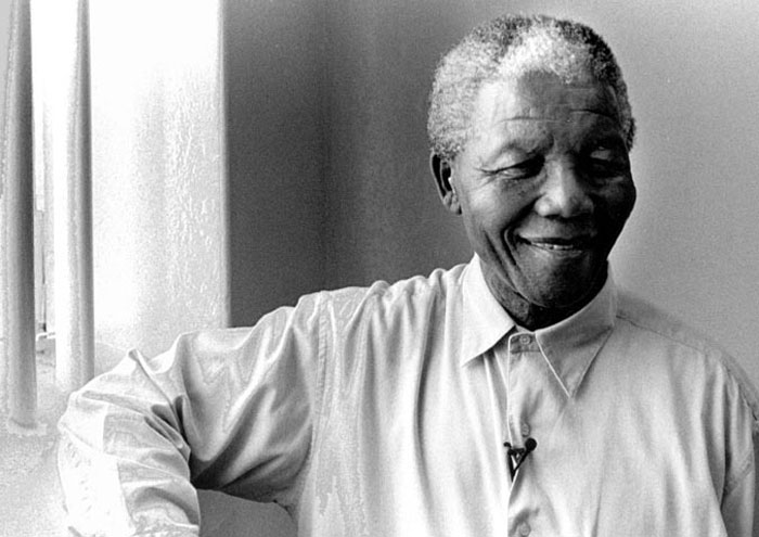 South African president Nelson Mandela revisits his prison cell on Robben Island, where he spent eighteen of his twenty-seven years in prison. Information or Purchase Request