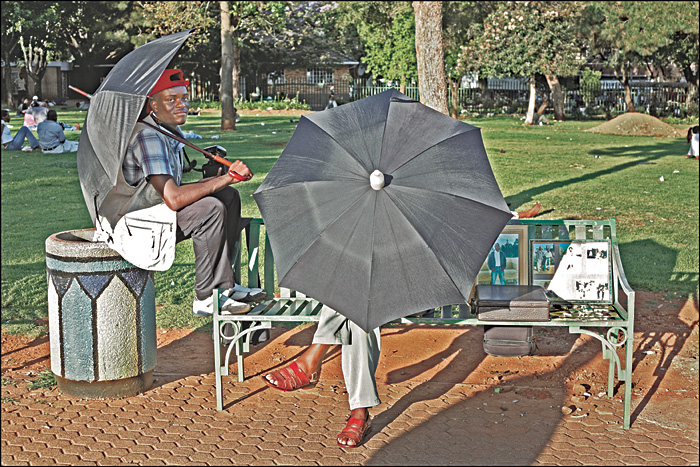 Street photographers in Joubert Park, Johannesburg, waiting for customers. Information or Purchase Request