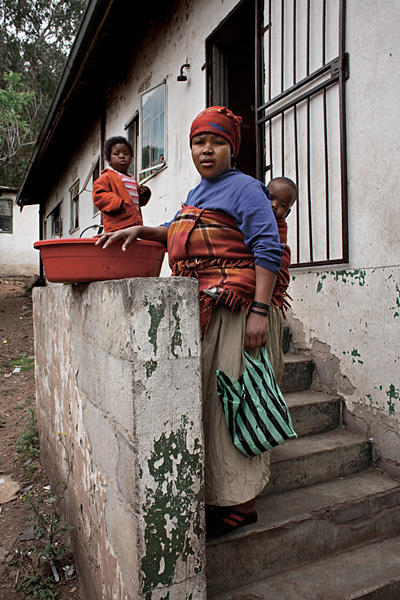 Delisile Malanga and her two children in a poor district of Johannesburg. She is unemployed, and her husband earns R1 100 per month. Information or Purchase Request