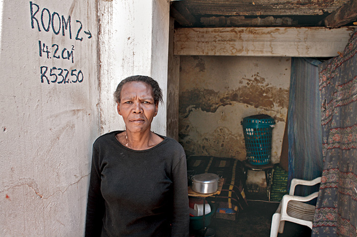 Pensioner Tholiswa Lauiugo in front of her room in Johannesburg. She is recovering from TB. Information or Purchase Request