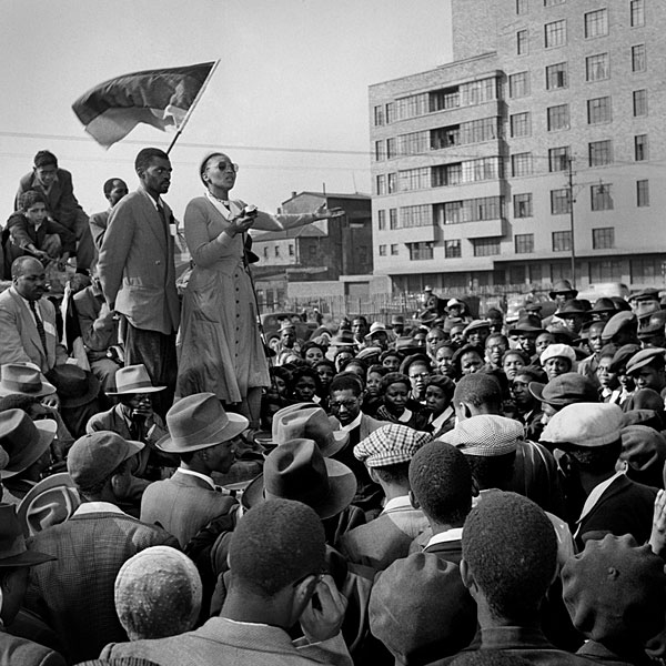 Violet Hashe, fiery African trade union leader, called on the people at "Freedom Square" in Fordsburg, Johannesburg to defy the 'unjust laws' passed by the Apartheid government. Information or Purchase Request