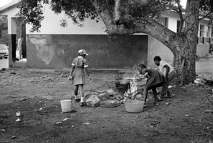 Schoolchildren prepare their meal for the day, Balula Primary Farm School