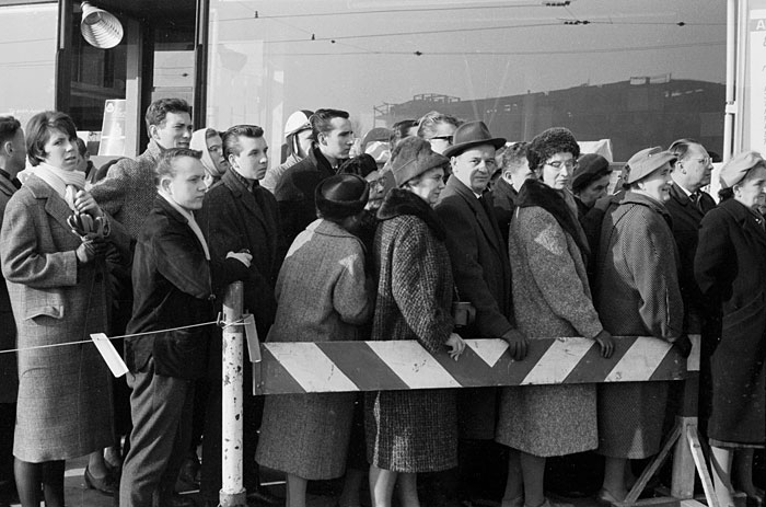 People queue