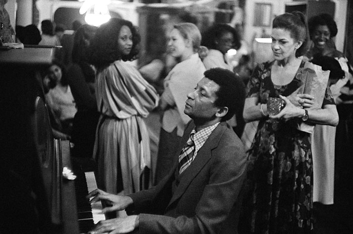 Abdullah Ibrahim, formerly known as the Dollar Brand, is one of Cape Town's leading pianists and composers. He went into exile in the USA. This photograph was taken when he played at a friend's wedding party in New York. Information or Purchase Request