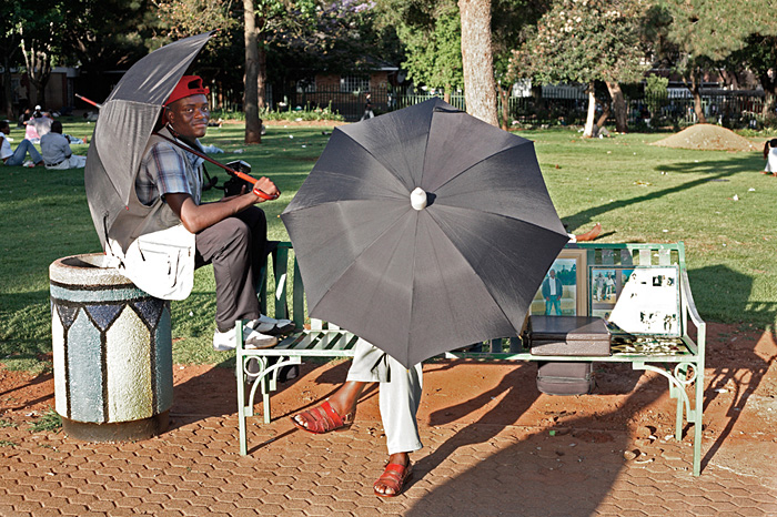 Street photographers in Joubert Park, Johannesburg, waiting for customers. Information or Purchase Request