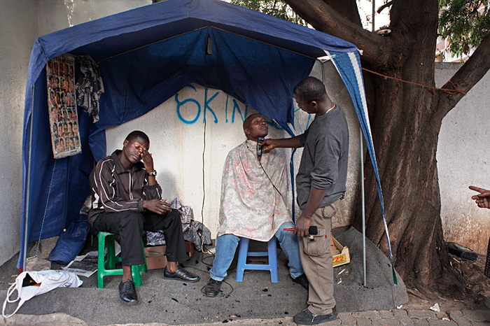 A customer having a shave in the Hillbrow district of Johannesburg.