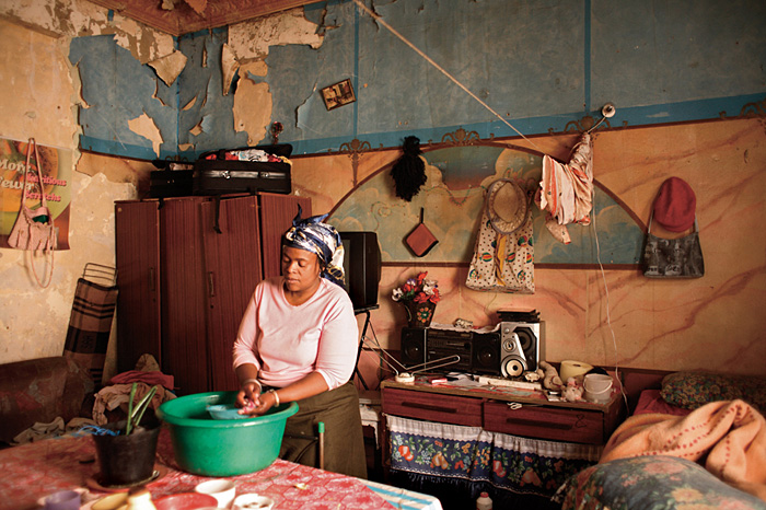 Thobile Ndlovu at home at 60 Joel Street, Berea, a suburb of Johannesburg. She is unemployed and gets child support for her daughter. She tries to supplement her income selling cool drinks. Information or Purchase Request
