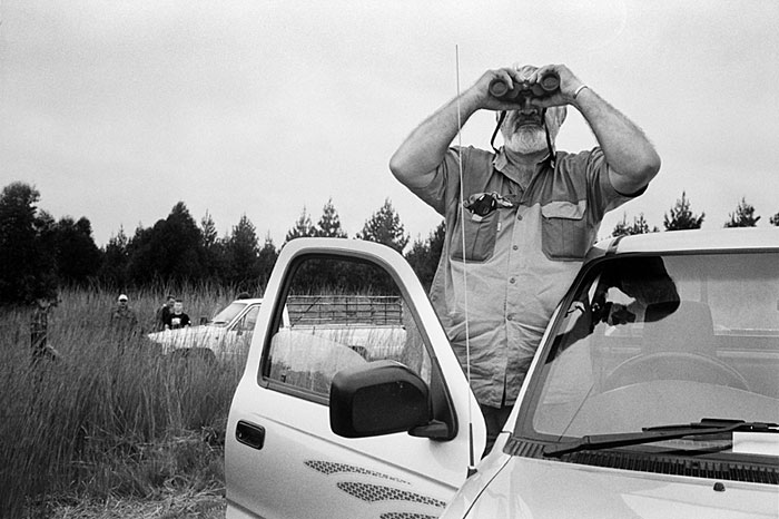 Farmer Roy Ferguson searches the fields for wild pigs